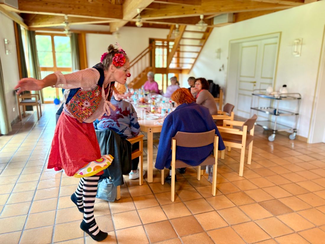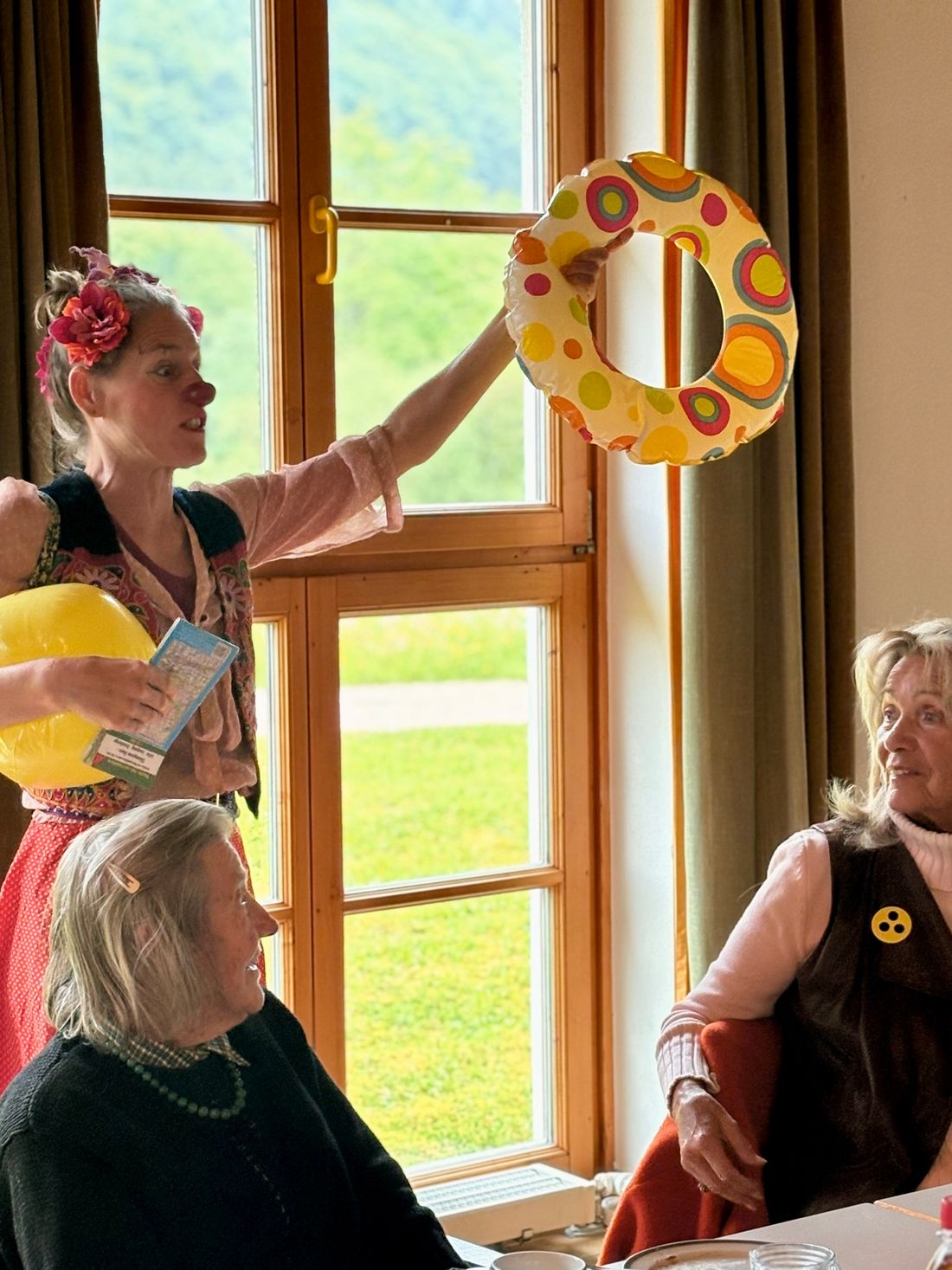 Am Donnerstag, den 22. Mai 2025, wurde der „Bunte Nachmittag“ in Ruhpolding zu einem ganz besonderen Erlebnis: Die Clownin Frau Blume war zu Gast und brachte mit spontaner Improvisation frischen Wind und eine große Portion Lebensfreude in den Raum.