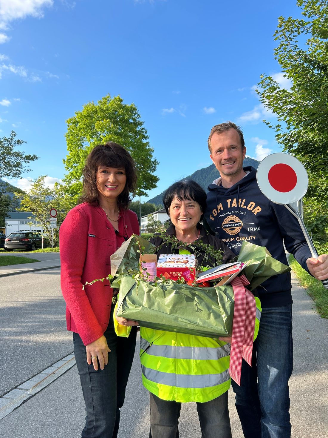 An rund 190 Tagen im Jahr steht unsere Schulweghelferin am Fußgängerübergang vor der Schule und sorgt dafür, dass die Grund- und Mittelschüler der Schule Ruhpolding sicher über die Straße kommen. Zum Dank bekam sie nun vom Elternbeiratsvorsitzenden Felix Reinwald und von der Rektorin Josephine Brunnhuber einen Geschenkkorb überreicht.
