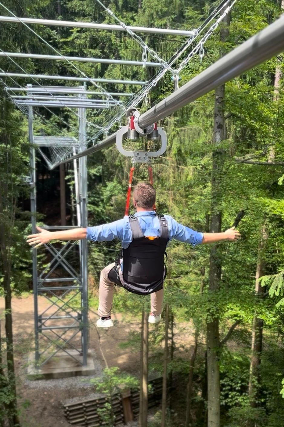 Den feierlichen Rahmen bildete die offizielle Segnung durch den evangelischen Pfarrer Andreas Buchner und Pastoralreferent Georg Gruber. Anschließend wurde das symbolische Band durchschnitten – und die Fly-Line war eröffnet. Dann wurde es ernst – oder besser gesagt: es wurde abgehoben. Alle Gäste durften ihren ersten Flug wagen und die neue Attraktion erleben. Auch Bürgermeister Justus ließ sich die Gelegenheit nicht entgehen: „Es ist wie eine kleine Auszeit – zehn Minuten, die sich anfühlen wie ein Spaziergang durch die Luft.“