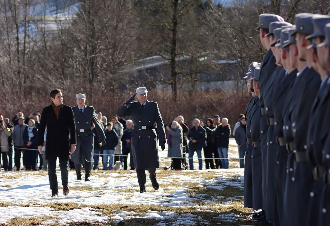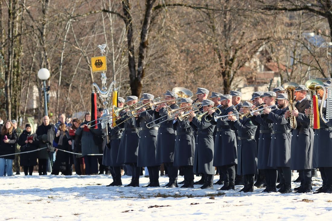 Am Vormittag des 12.02.2026 marschierten die Rekrutinnen und Rekruten der Gebirgsjägerbataillone 231 aus Bad Reichenhall und 232 aus Bischofwiesen auf die Kurhauswiese in Ruhpolding ein. In Anwesenheit zahlreicher Gäste, Angehöriger sowie Bürgerinnen und Bürger der Gemeinde leisteten sie bei strahlendem Sonnenschein ihren Eid.