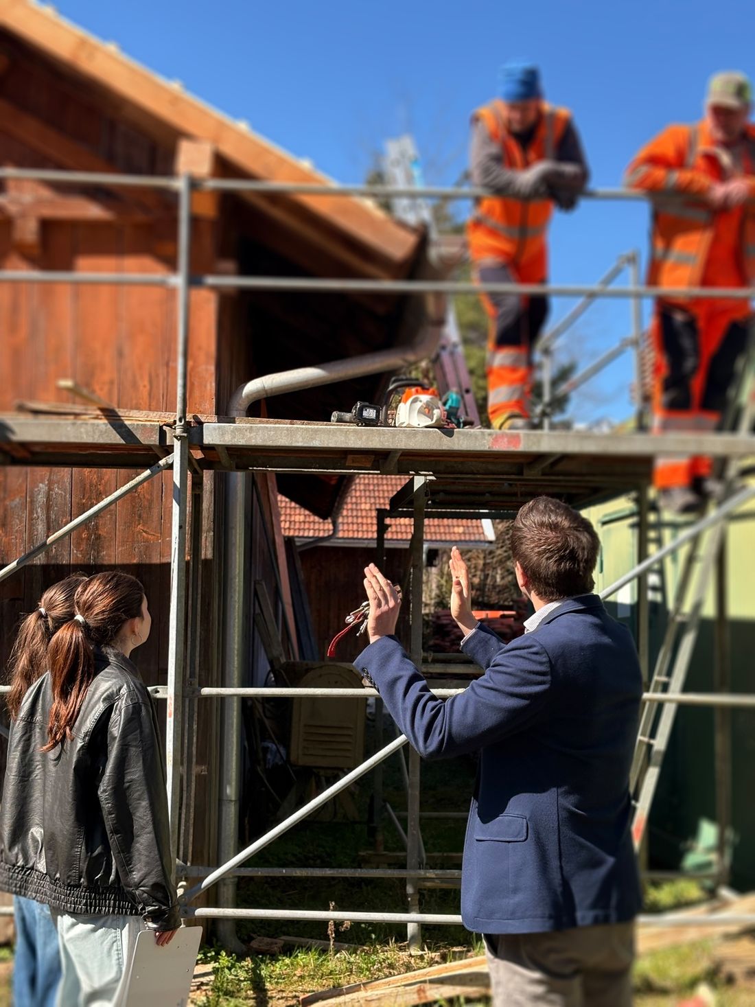 Nach dem Vormittag im Rathaus ging es weiter zu einem Außentermin: Gemeinsam mit dem gemeindlichen Bauhof wurde einer der Lagerplätze inspiziert und mögliche Potenziale erörtert. Ziel war es, den aktuellen Zustand zu begutachten und Überlegungen für aktuelle und zukünftige Nutzungsmöglichkeiten anzustellen.