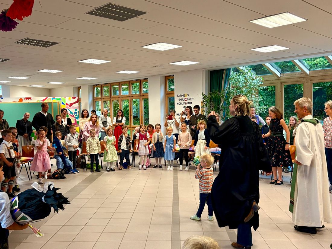 Pfarrer Otto Stangl spendete den Erstklässlern seinen besonderen Segen und wünschte ihnen einen guten Start in die Schulzeit. Die evangelische Pfarrerin Claudia Buchner begrüßte die Kinder mit liebevollen Worten und lud sie zu einer kleinen Mitmach-Aktion ein, bei der alle gemeinsam aktiv werden und die Freude am Miteinander erleben konnten.