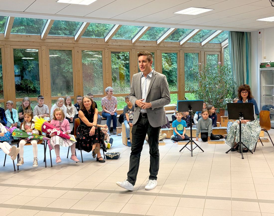 Im Anschluss richtete Bürgermeister Justus Pfeifer motivierende Worte an die neuen Schülerinnen und Schüler: „Der Schulstart ist jedes Jahr ein ganz besonderer Moment: voller Neugier, neuer Wege, Freunde und spannender Begegnungen. Ich wünsche allen Schülerinnen und Schülern einen erfolgreichen Start ins neue Schuljahr!“ Darüber hinaus wandte er sich auch an die Eltern: „Unterstützen Sie Ihre Kinder liebevoll und begleiten Sie sie auf ihrem Weg – damit sie einen guten Start ins Schulleben haben und die Schule als einen Ort voller Freude und Erfolg erleben.“