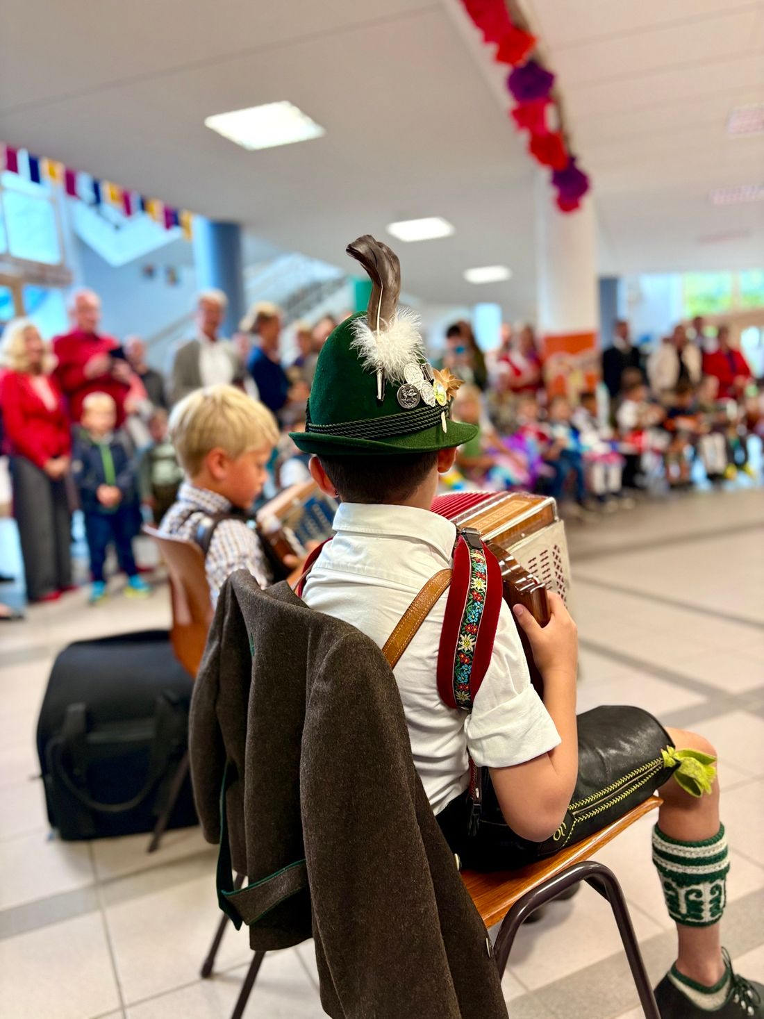 Schulleiterin Josephine Brunnhuber, begrüßte die neuen Erstklässler gemeinsam mit ihren Familien herzlich. Mit einer liebevoll vorbereiteten Schultüte, die sie selbst von ihrem Mann erhalten hatte, brachte sie die Kinder und Eltern zum Lächeln. In der Tüte verbarg sich ein „Geduldsfaden“, der symbolisch für Ausdauer und Geduld in den kommenden Schuljahren stehen soll. Außerdem enthielt die Tüte einen roten Stift – nicht nur zum Korrigieren, sondern auch, um den Kindern viele fröhliche Smileys auf ihre Arbeiten zu zaubern.