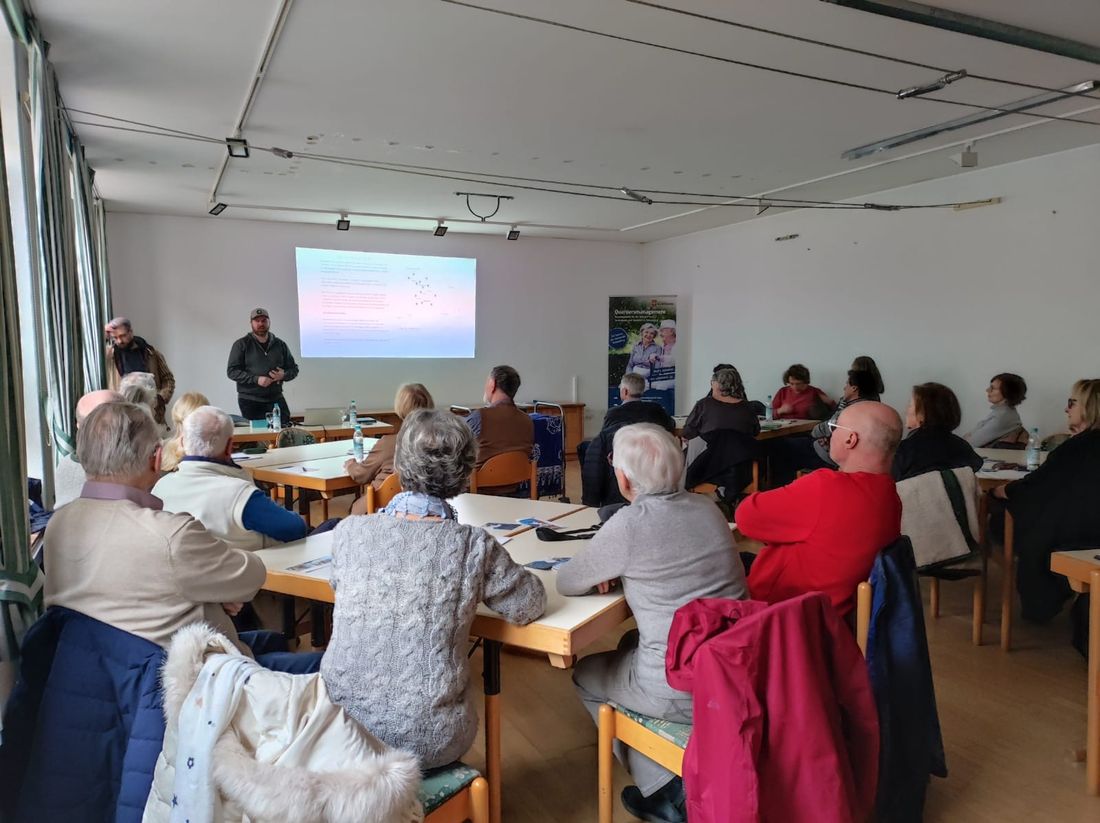 Im Mittelpunkt standen praxisnahe Tipps rund um digitale Sicherheit. Die Teilnehmenden erfuhren unter anderem, wie sichere Passwörter erstellt werden, worauf bei verdächtigen E-Mails und unbekannten Links zu achten ist und wie man sich wirksam vor Betrug und Datenmissbrauch schützen kann. Anschaulich wurde erklärt, warum lange und komplexe Passwörter so wichtig sind. „Mit einem solchen Passwort macht man es den Hackern schwer“, sagte Frau Scheiber vom Quartiersmanagement und verdeutlichte damit, wie entscheidend einfache Schutzmaßnahmen im Alltag sein können.