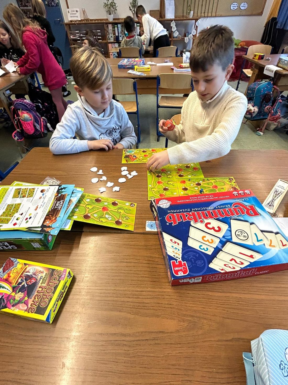 Fairness, Teamgeist, ein positives Miteinander und die damit verbundene Entwicklung sozialer Kompetenzen wurden am vergangenen Freitag an der Schule Ruhpolding im Rahmen eines Spielevormittags geschult. Dabei standen Brett- und Kartenspiele genauso hoch im Kurs wie Geschicklichkeits- und Koordinationsspiele. Mit Feuereifer wurde von der 1. bis 9. Klasse gespielt, was erfreulicherweise zeigte, dass auch in Zeiten von Handy, Computer und sozialen Medien die Kinder und Jugendlichen durchaus noch Lust und Freude an herkömmlichen Spielen haben; man muss ihnen nur die Gelegenheit dazu geben!
