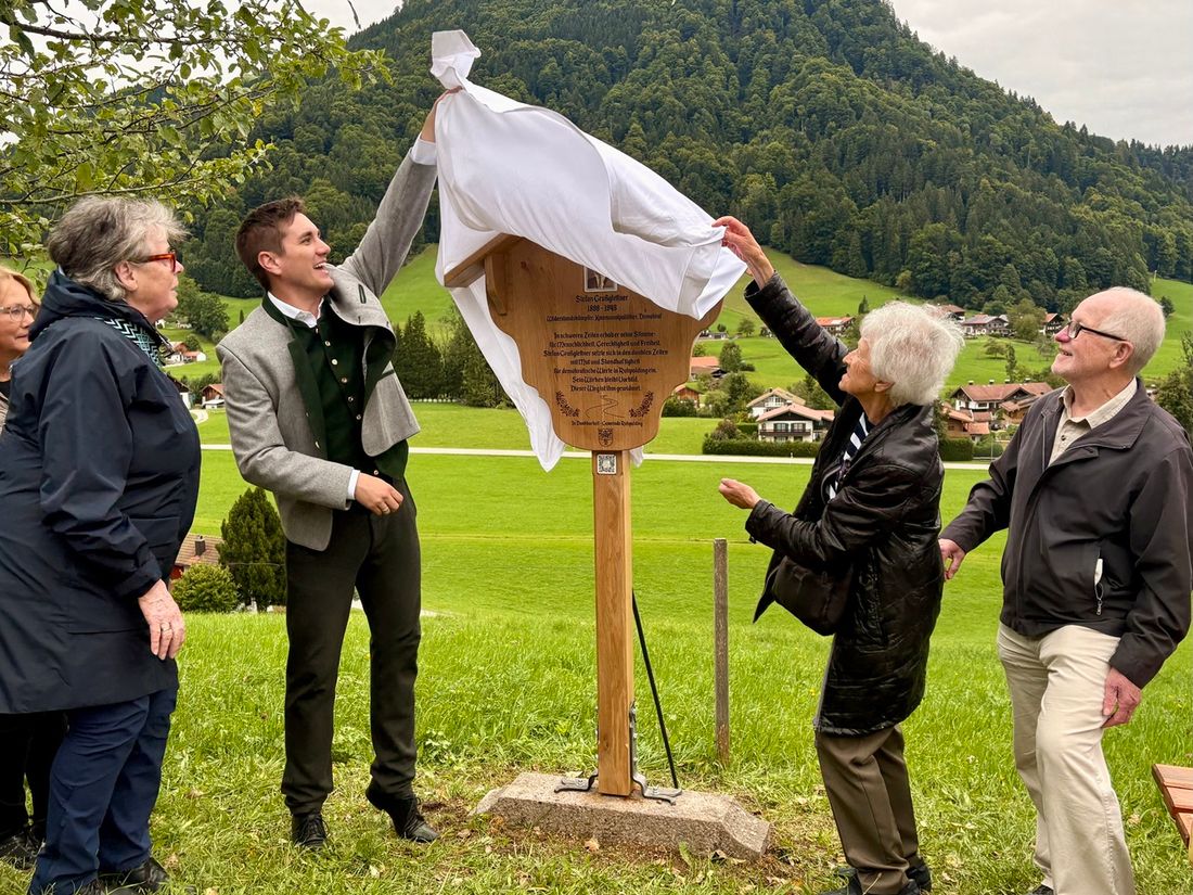 Schließlich enthüllten Frau Großglettner und der Bürgermeister gemeinsam die Gedenktafel – ein bewegender Augenblick, der vielen Gästen naheging. Sichtlich gerührt bedankte sie sich für die Würdigung ihres Vaters.