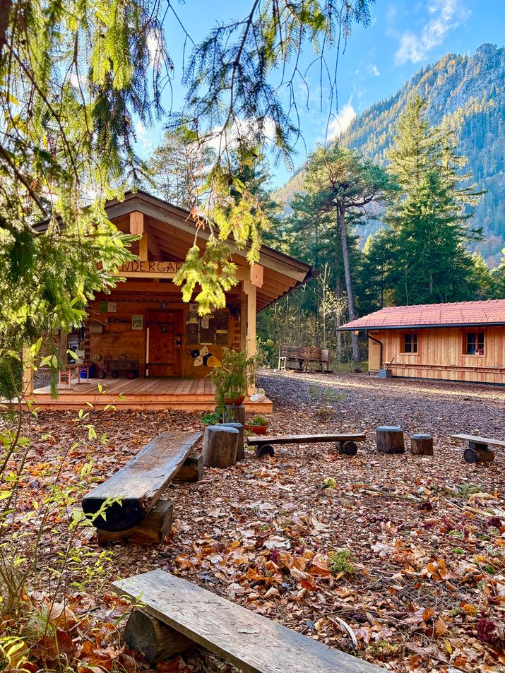 Danach packen wir unsere Rucksäcke und Sitzkissen und machen uns auf den Weg zu einem unserer Waldplätze. Unser Wagerl, bepackt mit Töpfen, Schaufeln, oder Seilen, Büchern und Bastelmaterialien, Schnitzmessern und Werkzeug, Wecheslgewand, Wasserkanister und Seife, sowie Erste-Hilfe Set ist auch dabei.