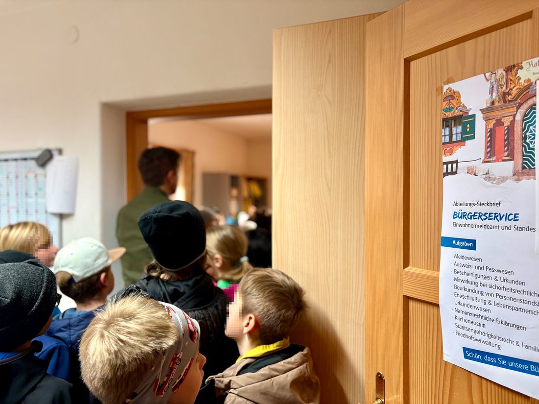 Unter der Führung von Bürgermeister Pfeifer erhielten die Schülerinnen und Schüler die Gelegenheit, alle Abteilungen des Rathauses zu erkunden. Die Gemeindemitarbeiter freuten sich, den neugierigen Kindern ihre vielfältigen Aufgaben zu erklären. Mit großem Interesse hörten die Kinder zu und stellten viele Fragen zur täglichen Verwaltungsarbeit.