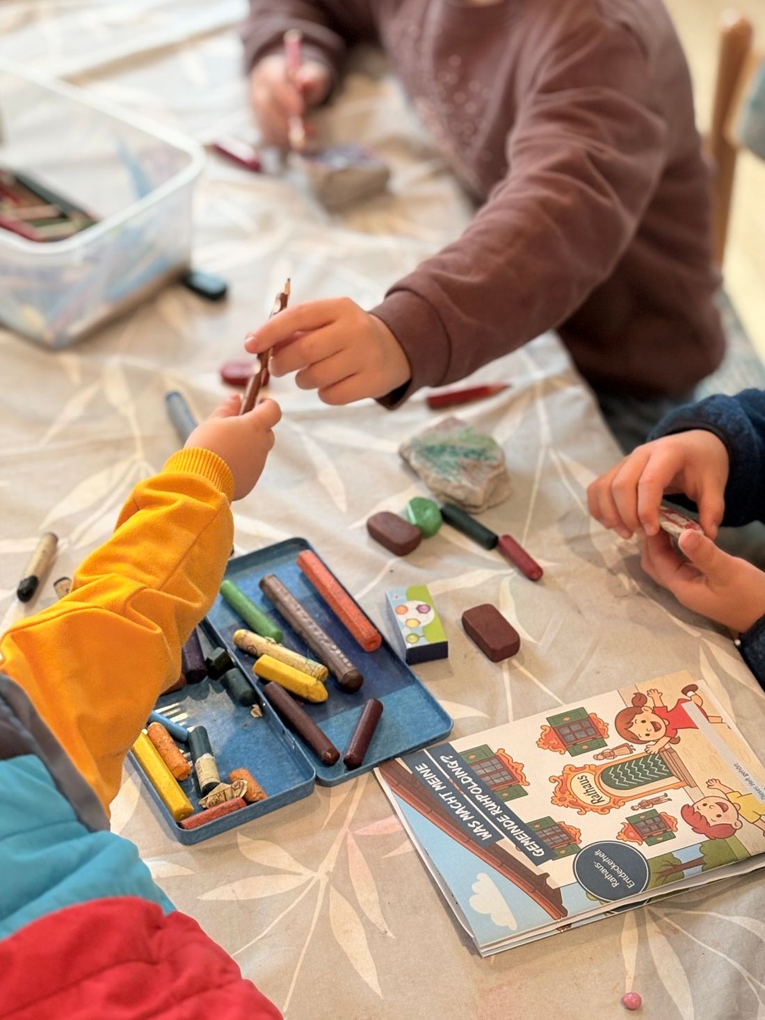 Der Waldkindergarten Glühwürmchen holte quasi den Wald in die „Alte Schule“ und verwandelte das Erdgeschoss in einen einladenden Bereich für Kinder. Mit Bastelangeboten, Zapfen-Werfen, angenehmen Klängen und liebevoll gestalteten Details wurde eine besondere Atmosphäre geschaffen. Die Station diente dabei auch als Start- und als Zielpunkt der Rathaus-Kinder-Rallye. Auch die Eltern konnten sich umfassend über den Waldkindergarten informieren und mehr über dessen Konzept und Angebote erfahren.