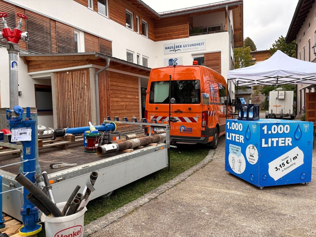 Das Interesse war groß – an den Stationen Kläranlage und Wasserwerk erfuhren die Besucher Wissenswertes, etwa dass gereinigtes Wasser in die Traun geleitet wird und nicht zurück in die Häuser, oder wie viel ein Kubikmeter Wasser ist – veranschaulicht durch einen maßstabsgetreuen Würfel mit allen wichtigen Fakten zum Thema Wasser. Auch die großen Maschinen des Bauhofs wie Kehrmaschine, Schneepflug und der ausgestellte Pistenbully des Kommunalunternehmen Gemeindewerke zogen viele Blicke auf sich.